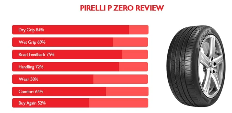أجرى موقع Tire Reviews اختبارًا تفصيليًا لإطار بيريللي P Zero الصيفي فائق الأداء. بناءً على 155 مراجعة للإطارات بمعدل 68% عبر مسافة قيادة إجمالية بلغت 2,179,074 ميلًا، احتل الإطار المرتبة 60 من أصل 74 إطارًا ضمن فئة الإطارات الصيفية القصوى الأداء.