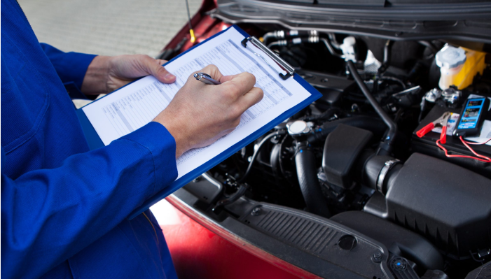 - يقوم الموظفون بفحص الفرامل، والأضواء، والانبعاثات، وغيرها.
