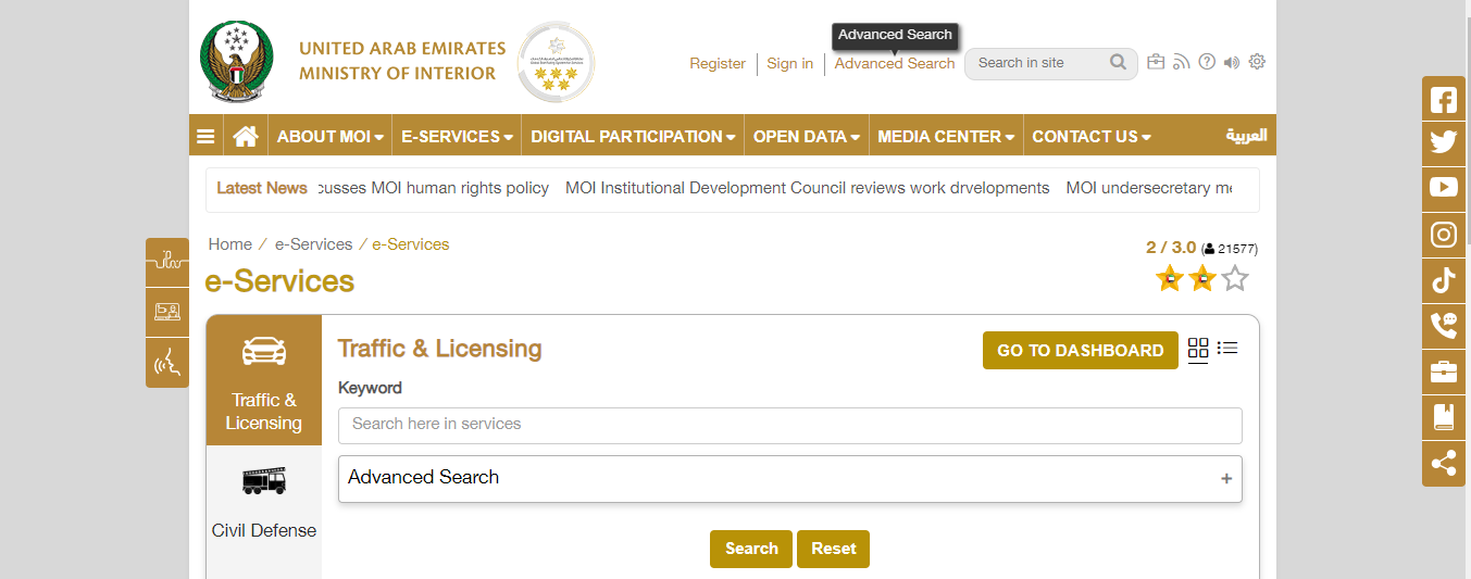 4. قم بتسجيل الدخول إلى موقع خدمات وزارة الداخلية باستخدام بطاقة الهوية الإماراتية الخاصة بك أو قم بالتسجيل.