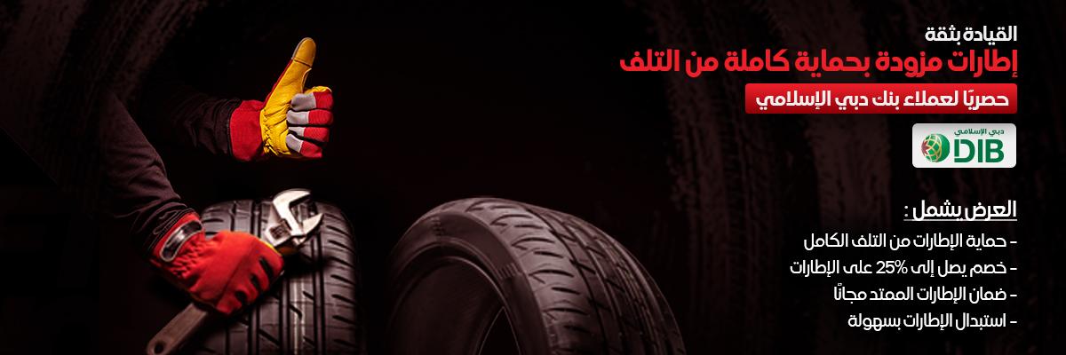 بصفتك عميلًا مميزًا لقرض السيارات من بنك دبي الإسلامي، أنت مؤهل للحصول على عرض إطارات حصري بقيمة وحماية لا مثيل لهما.