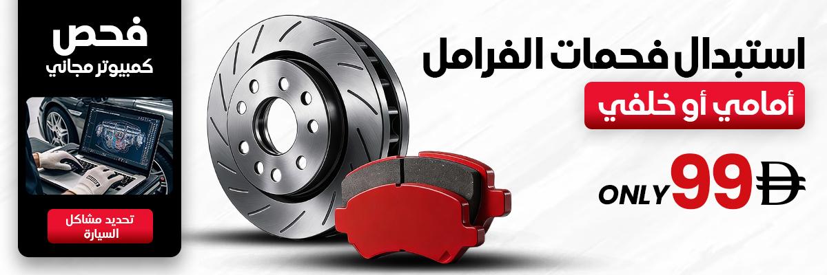 يشمل العرض استبدال فحمات الفرامل للأمام أو الخلف (محور واحد) بالإضافة إلى فحص كمبيوتر مجاني مع تقرير مفصل