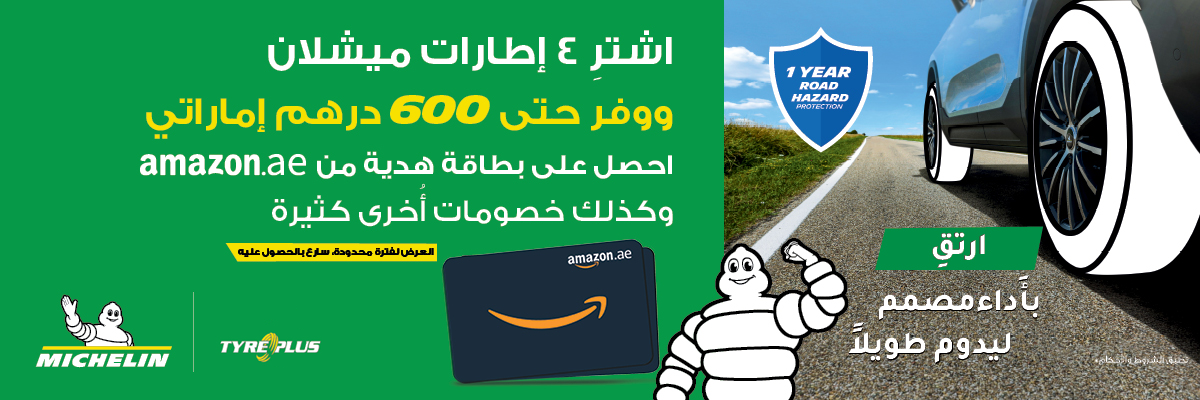 احصل على بطاقة هدية تصل إلى 600 درهم عند شراء إطارات ميشلان