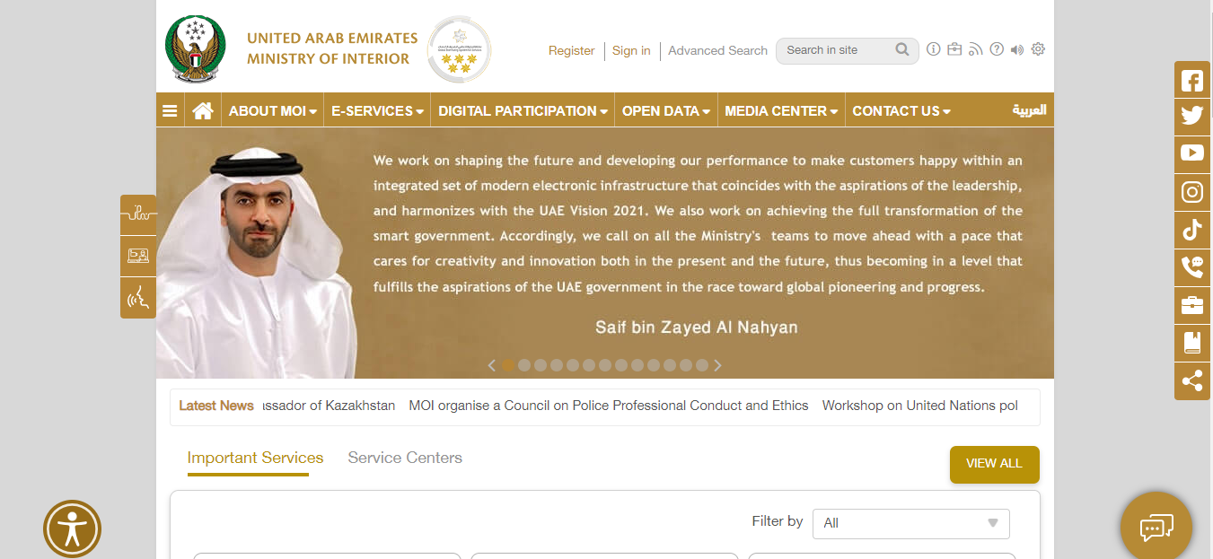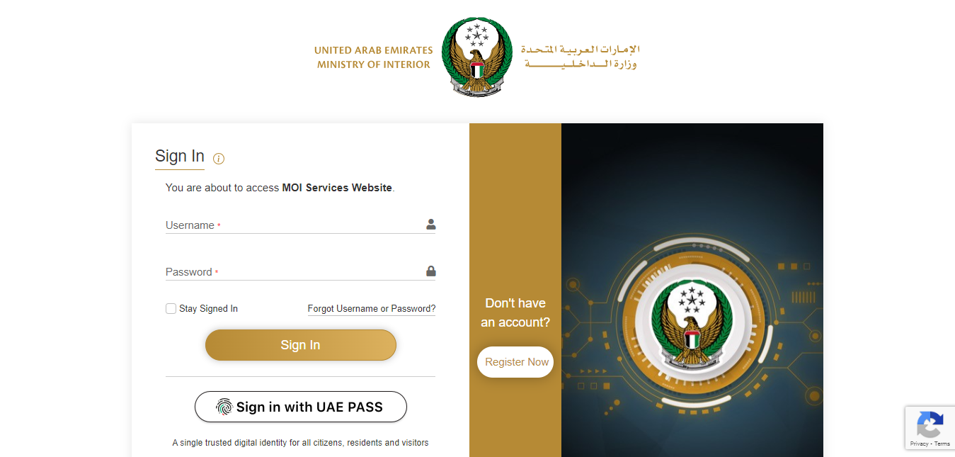 4. Login to the MOI Services Website with your Emirates ID or register.